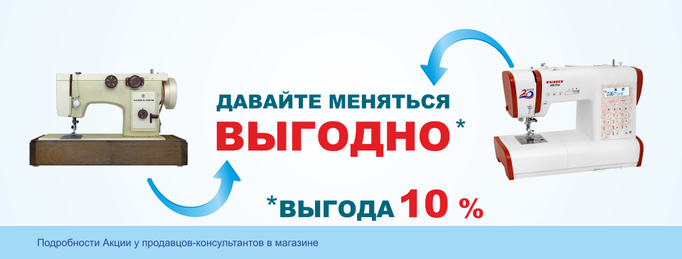 Приносите свою старую швейную машину в магазин Швейный мир, а взамен приобретайте новую, с выгодой 10%!